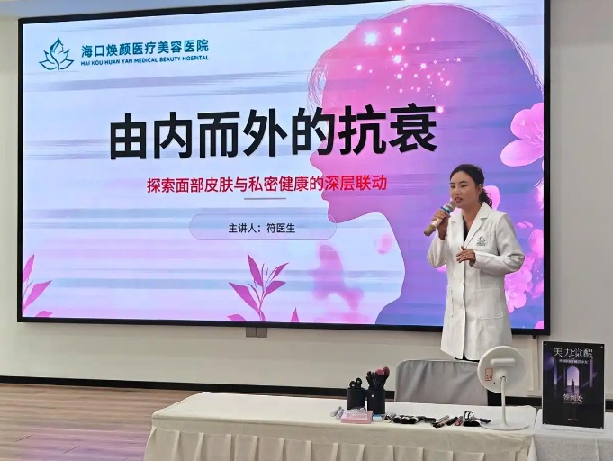 在核心的专家分享环节,海口焕颜医疗美容医院符医生带来《女性私密问题与肌肤的关联》主题讲座。符医生结合临床经验,以通俗易懂的方式解析了女性健康与肌肤状态的深层联系,强调了科学养护的重要性,现场嘉宾认真聆听、积极互动,收获了实用的健康与护肤知识。